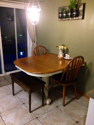 Puppy's food and drink area now fits nicely on the left of the table! Take note of the "non-bowl" feeding gadget!